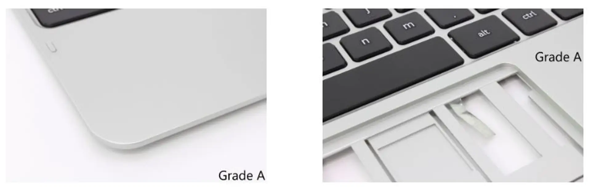 Palmrests are tested and are fully functional. All keys are present. Palmrest may have very minor scratches. Some keys may small have signs of wear such as scratches or keycap wear. These blemishes are small and often only perceivable upon very close inspection. The amount of cosmetic blemishes is minimal and generally only on a small portion of the palmrest or on a small number of keys.