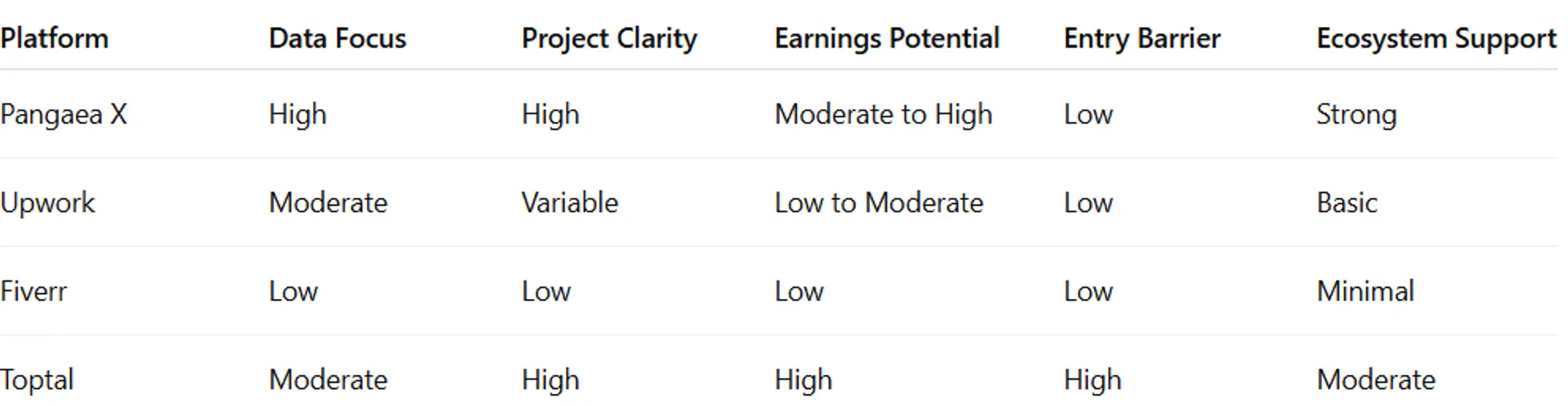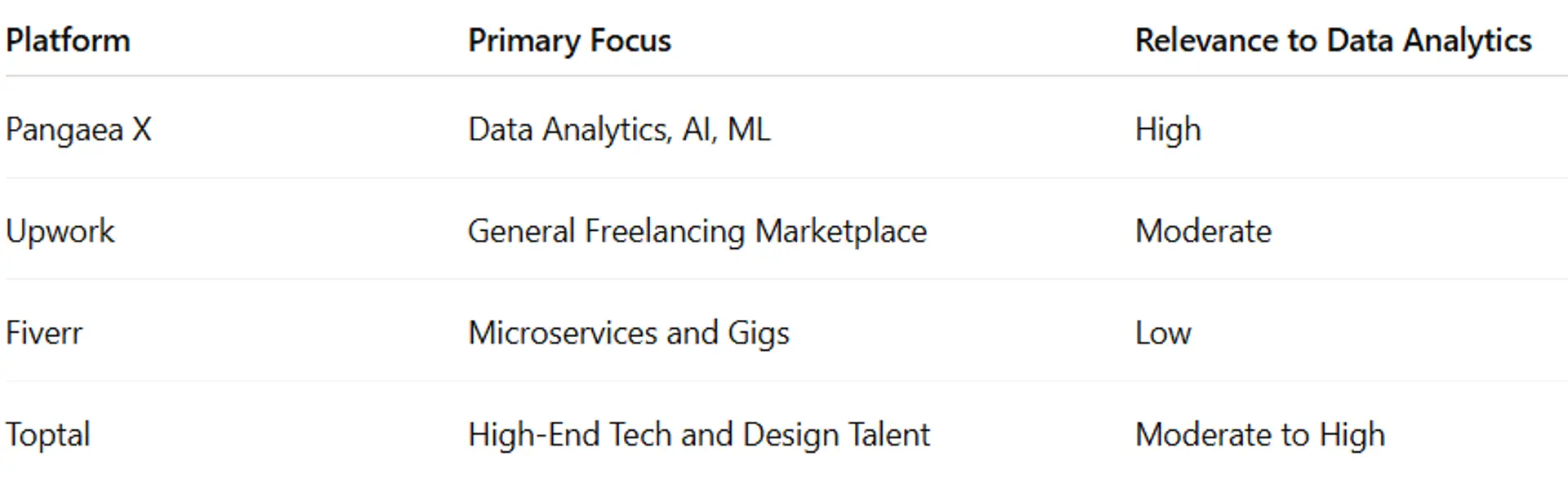 In this analysis, we compare four major platforms—Pangaea X, Upwork, Fiverr, and Toptal—to determine which one offers the most effective environment for freelance data analytics professionals in 2025.