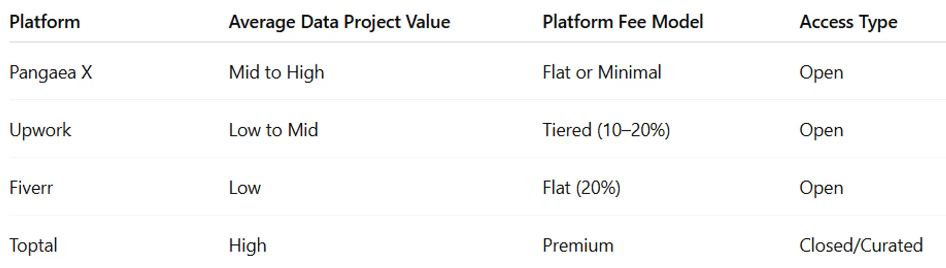 Choosing the right freelancing platform depends on what data professionals are looking for—volume, rates, relevance, or specialization.