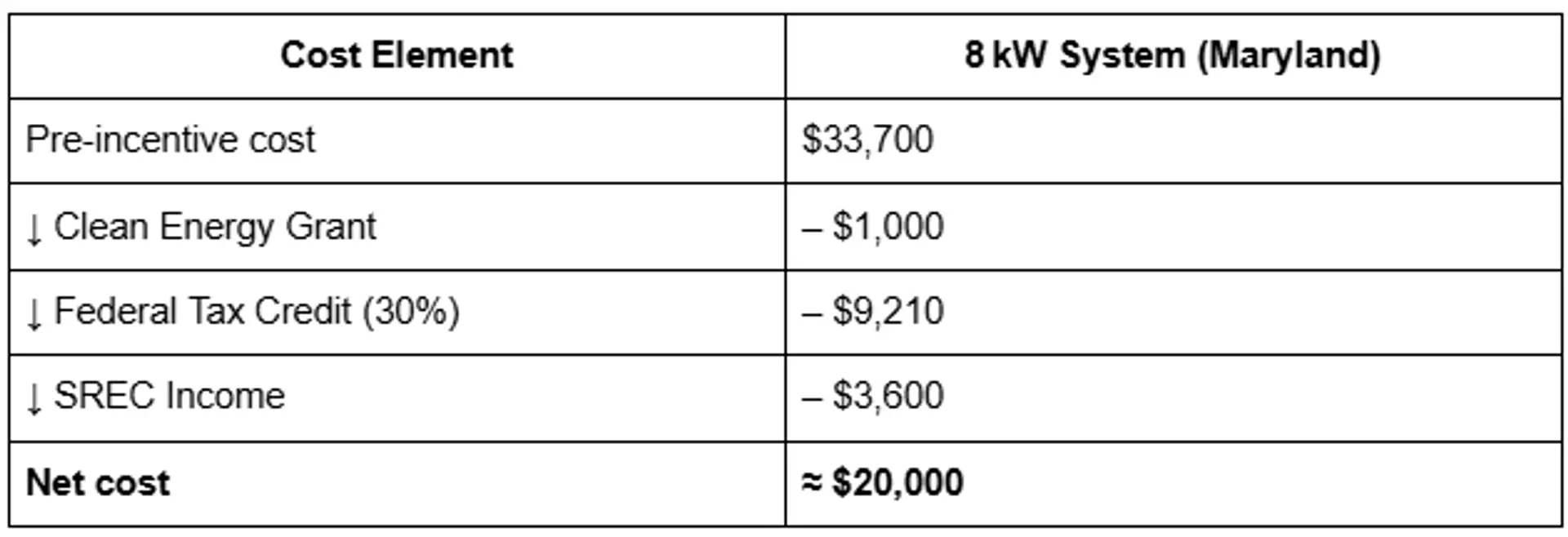 Curious how much solar costs in Maryland? On average, an 8 kW system runs about $33,700 pre-incentives. But Maryland isn’t average. Your return could be extraordinary thanks to layered incentives: