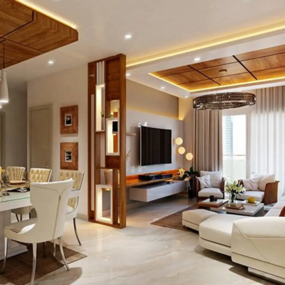False walls are also used to organize open layouts. A partial vertical divider made with wood slats or backlit panels can separate the dining area without using full walls. This approach is clean, modular, and effective for compact homes. In larger homes, false walls are built to create gallery-style spaces for displaying art or collectibles.