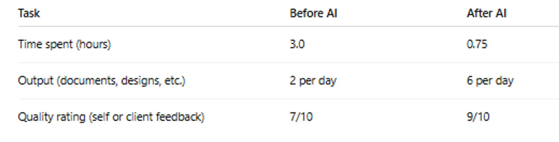 Prove value: Measure time saved on writing tasks (e.g., “Reduced report writing from 3 hours to 45 minutes”).