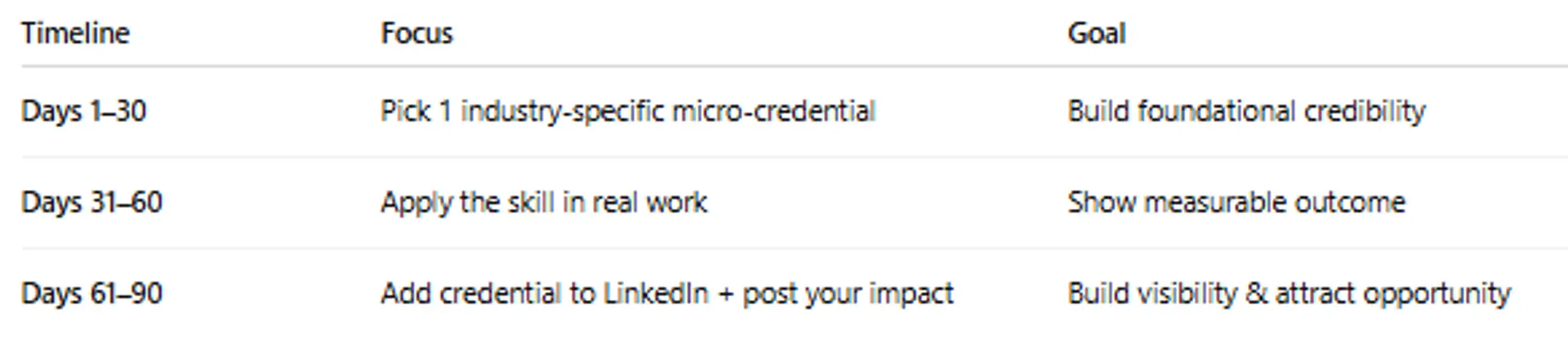 In 90 days, you’ll not only have proof of new skills — you’ll have built momentum, confidence, and a reputation for adaptability.