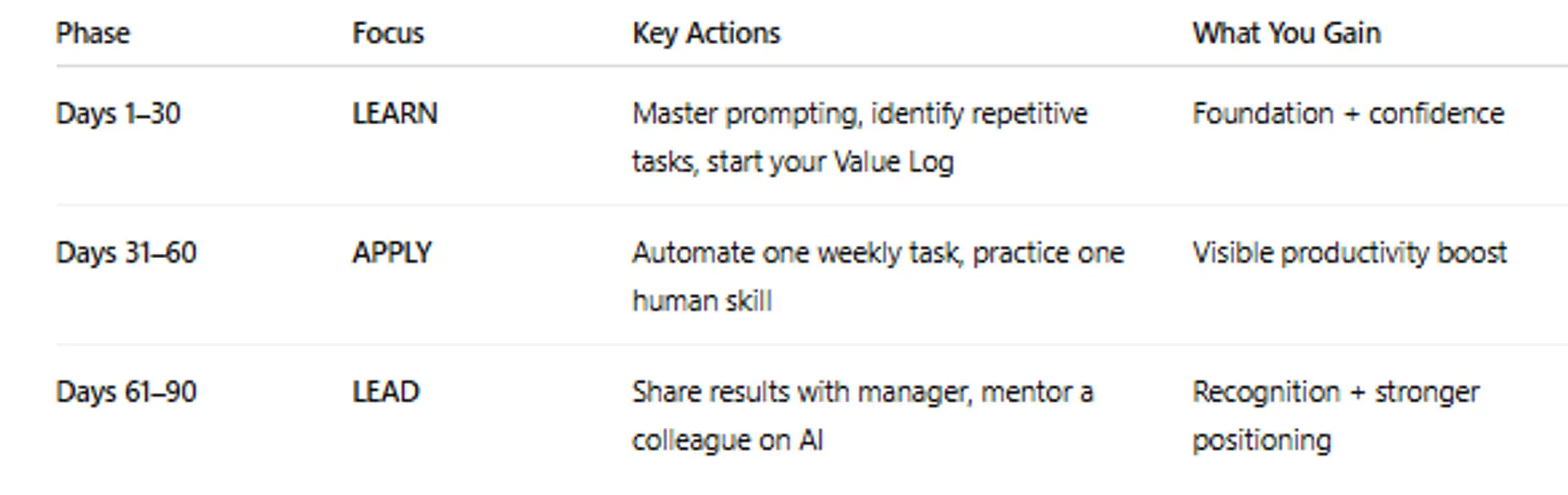 This article breaks down what’s really changing and gives you a 90-day roadmap to stay valuable—and even become more in-demand—in the new AI-powered workplace.