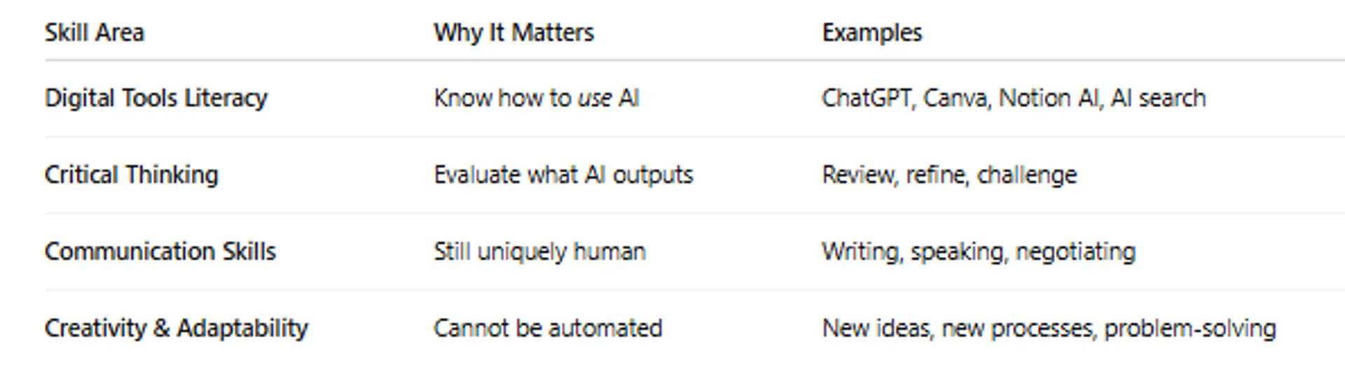 Focus on skills that require judgment, communication, creativity, and leadership — things machines cannot replicate.