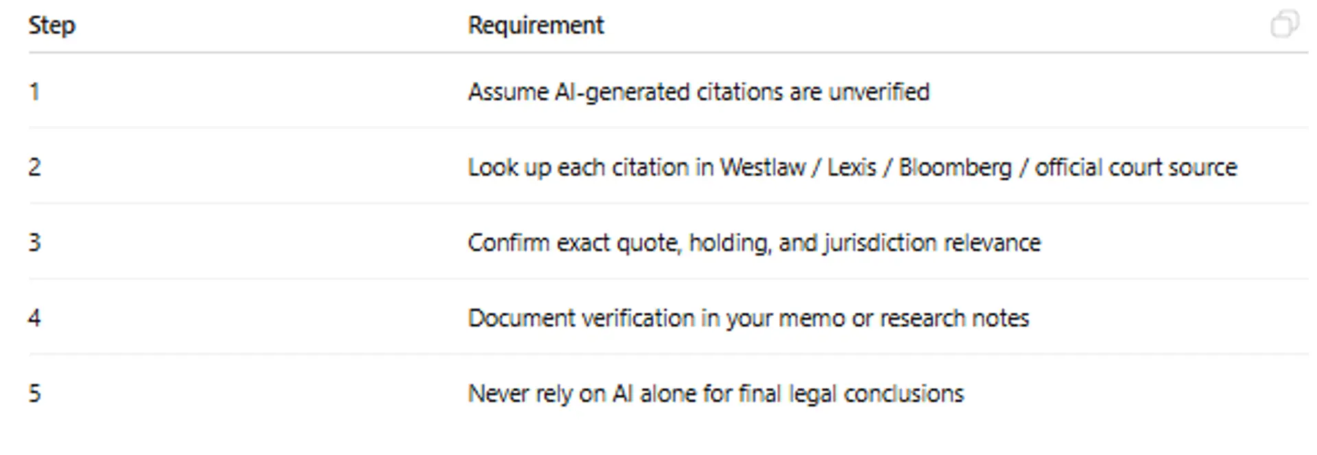 Every case citation, quote, rule reference must be independently verified before relying on it.