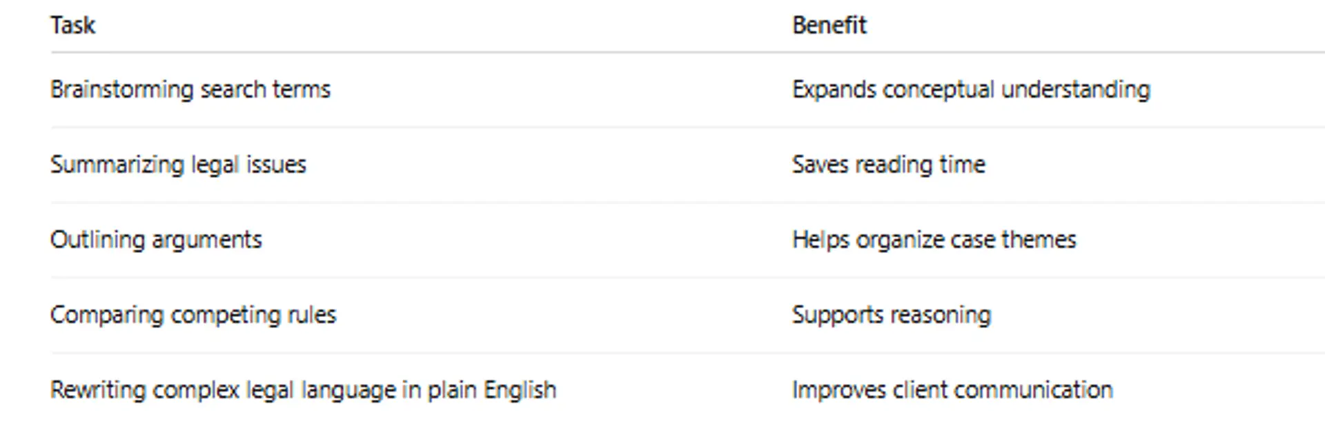 High-quality legal research requires authoritative sources. While AI can summarize, suggest search strategies, and compare arguments, it is not a primary legal research database.