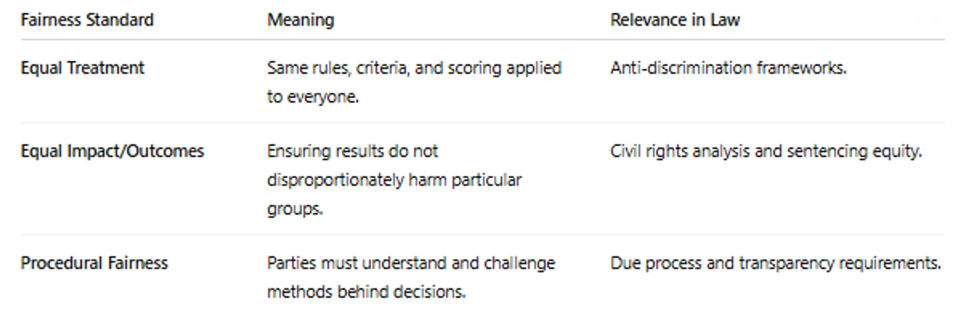 Fairness is a context-dependent evaluation. Different legal processes may require different fairness standards.