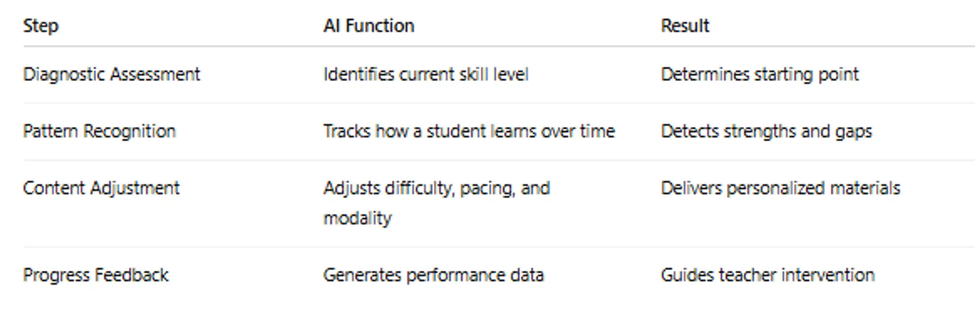 Unlike fixed lesson pacing, AI adapts the sequence in real time as the student learns.