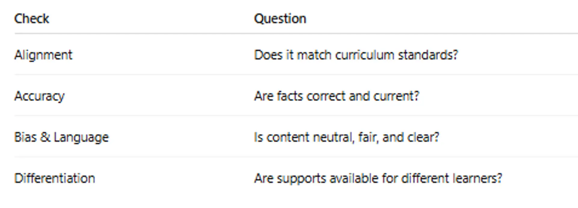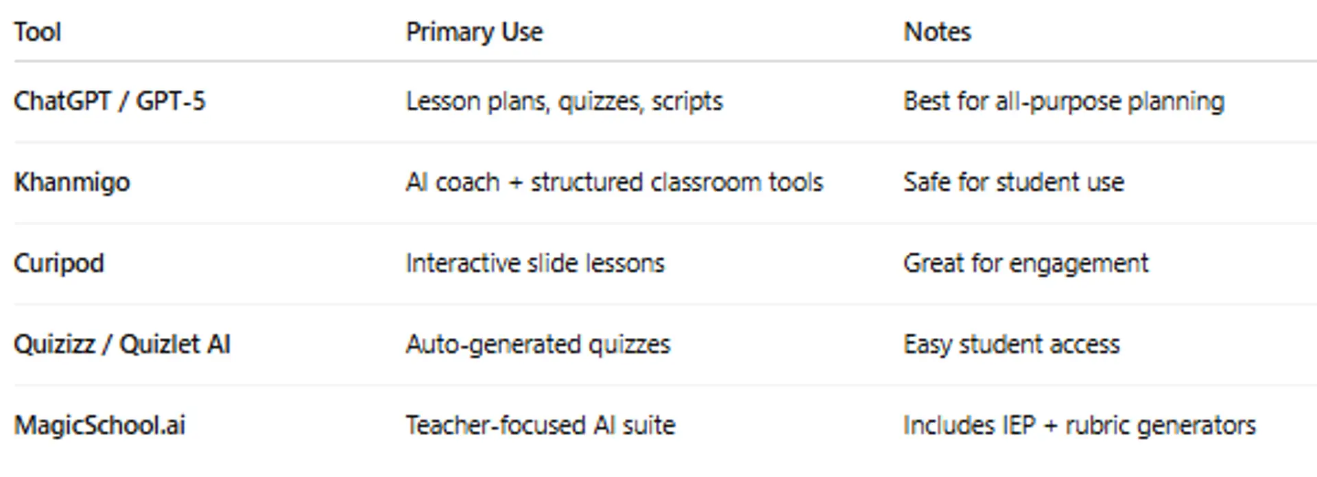 AI significantly reduces teacher preparation time by generating lesson plans, assessments, and instructional materials. However, the educator remains the professional decision-maker who refines and contextualizes content to support real learning. AI is most effective when used intentionally and ethically, with teacher review and student needs at the center.
