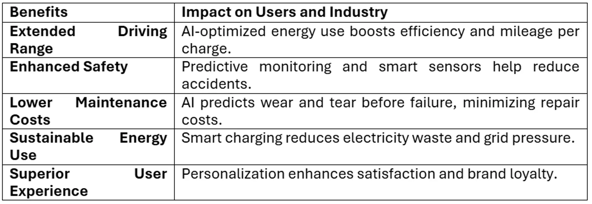 The integration of AI in electric vehicles is enabling a win-win situation for customers and manufacturers. The following are the most prominent benefits: