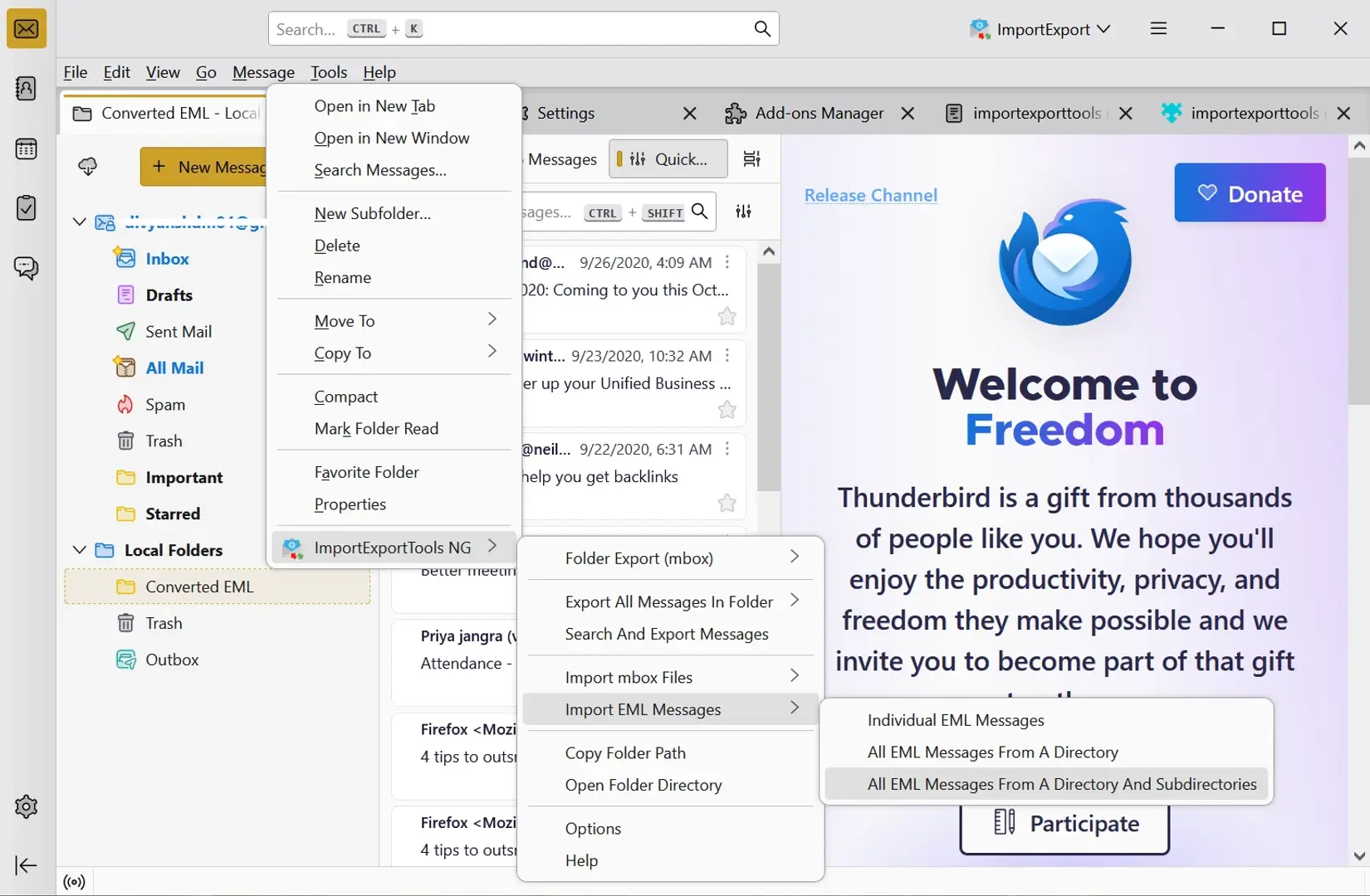 Now, restart Thunderbird and right-click on the folder you want your Outlook EML files to be imported.