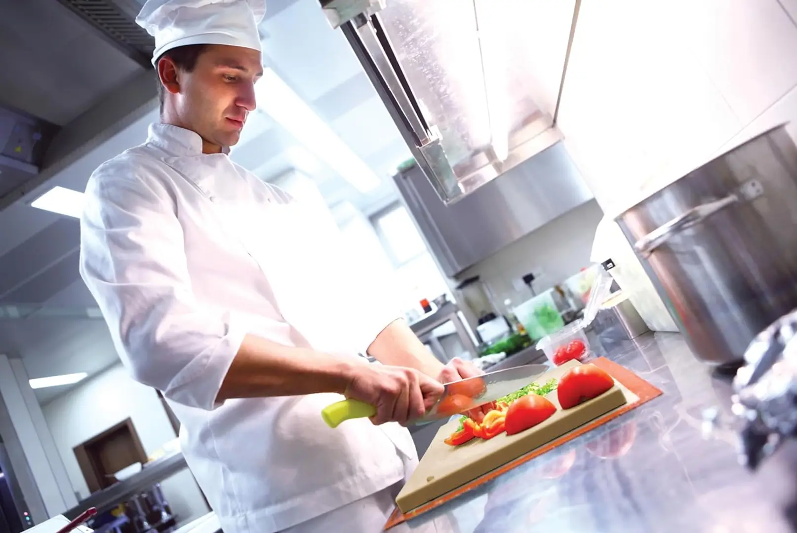 Additionally, the cutting board's non-slip surface ensures stability during use, preventing accidents and providing a secure cutting surface. Its lightweight design allows for easy handling and transportation, making it ideal for professional chefs who often work in different kitchen environments.